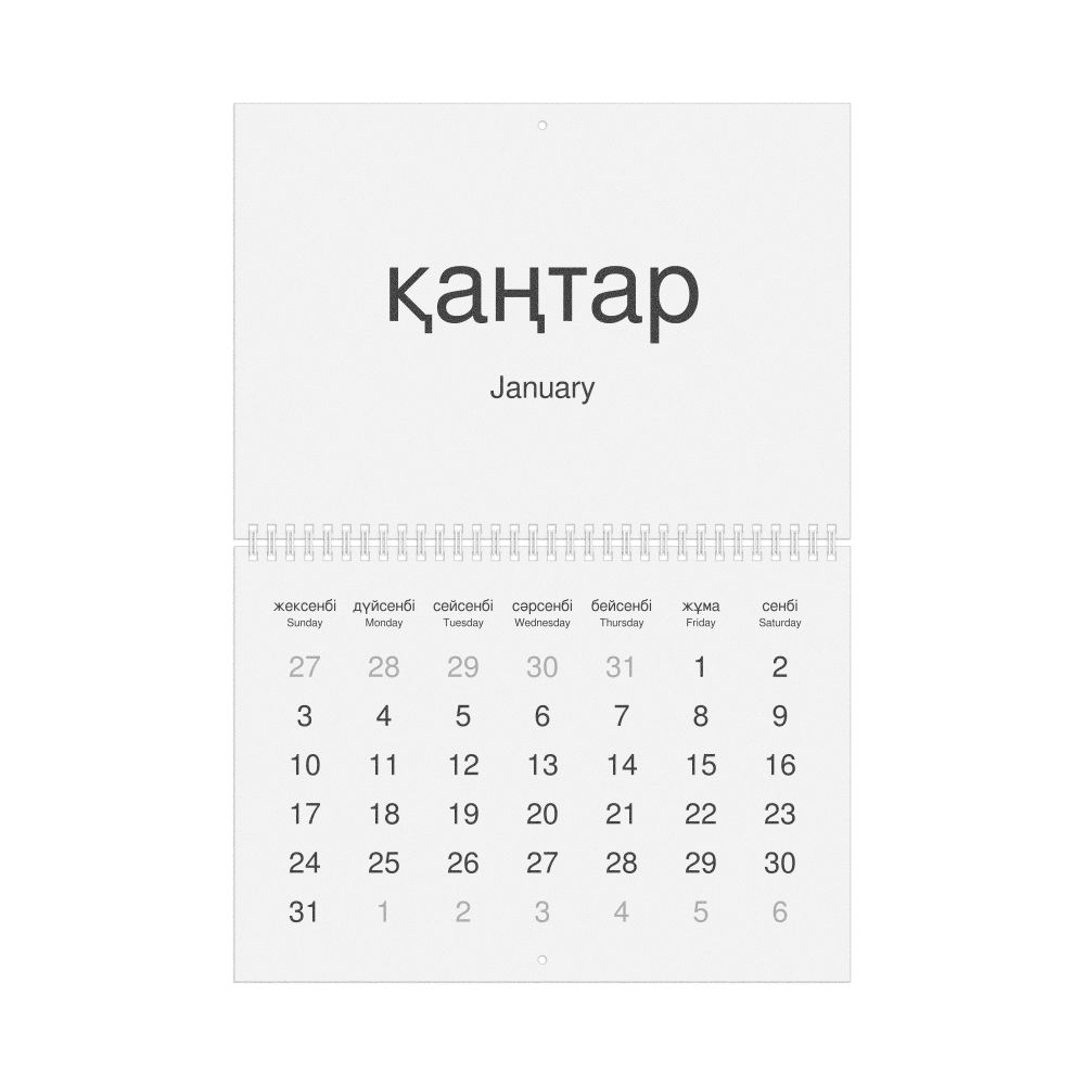 2026 Wall Calendar, Kazakh/English-Labeled, Monday-Start Layout, Wire-Bound, 11.7 x 8.3 in (29.7 x 21.0 cm)