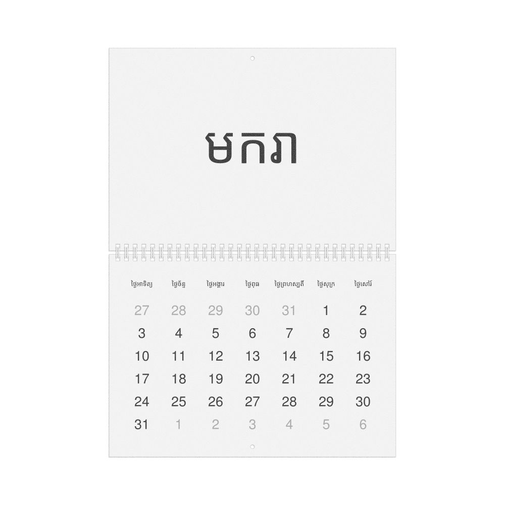 - Khmer heritage speakers and cultural connectors - For individuals seeking to maintain a connection to their history, ancestral roots, or the culture associated with the Khmer language, the calendar serves as a daily cultural marker. Use it in your home, office, library, or museum as a link to linguistic and cultural identity that integrates Khmer into your everyday life. Familiar language script and naming conventions may also provide a sense of home in a foreign environment.