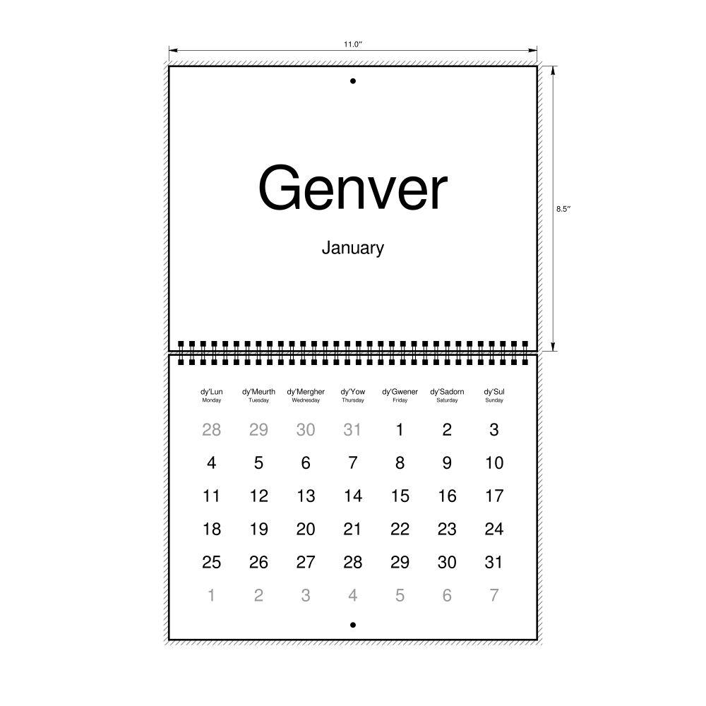 2027 Wall CalendarCornish/English-Labeled, Monday-Start Layout, Wire-Bound, 11 x 8.5 in (27.9 x 21.6 cm)