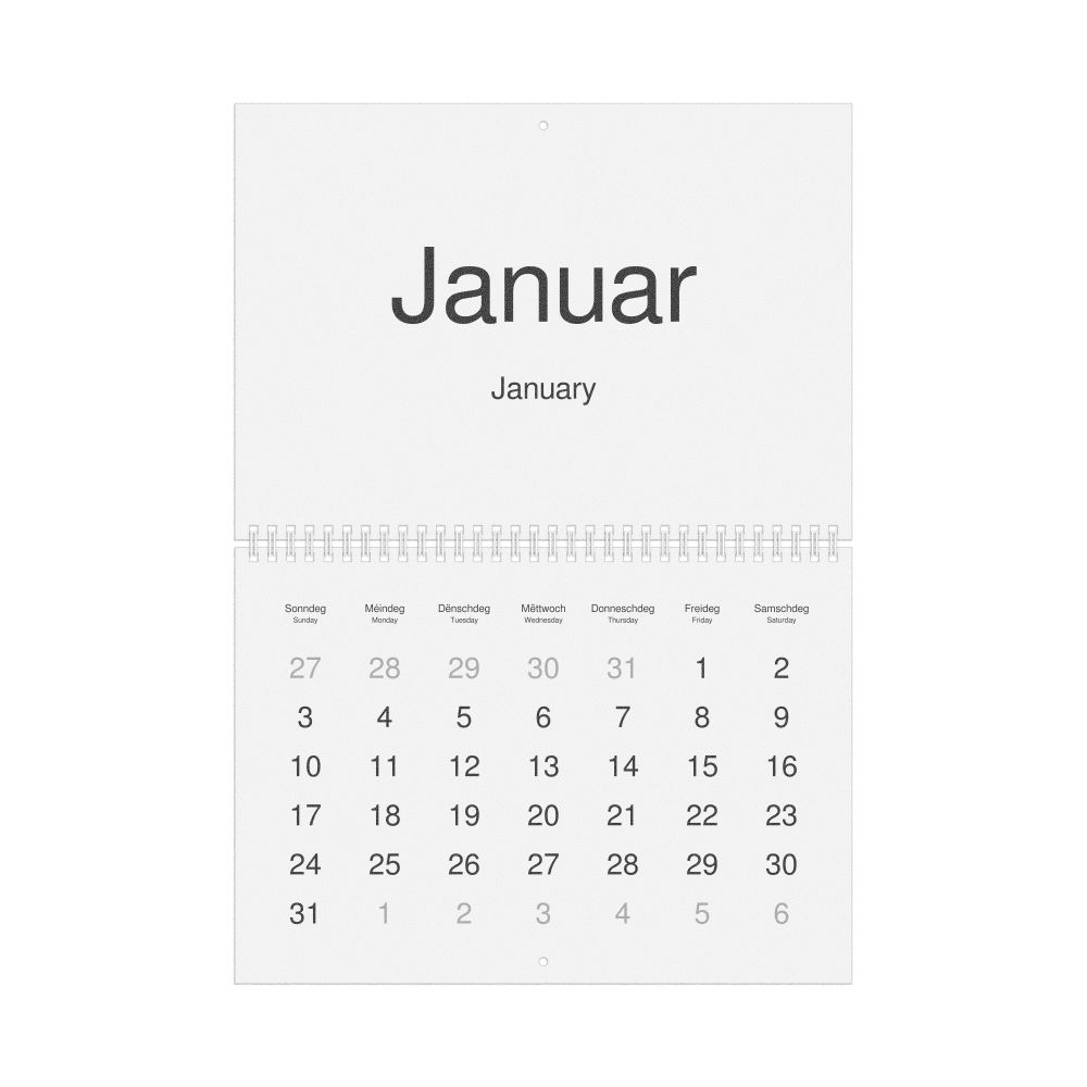 2026 Wall Calendar, Luxembourgish-Labeled, Monday-Start Layout, Poster / Wall Print, 23.4 x 33.1 in (59.4 x 84.1 cm)