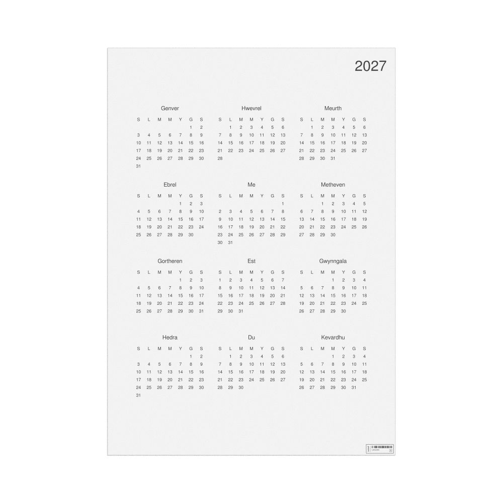 - Linguistics enthusiasts and polyglots - For "language geeks" interested in comparative linguistics or the mechanics of different languages and who value the aesthetic differences in scripts, orthography, and typography of different languages, the Cornish calendar serves as an object of intellectual interest. You can collect calendars for various languages to compare their linguistic roots (e.g., comparing Romance languages vs. Slavic languages). Leskoff's calendars are characterized by specific typographic choices that highlight the orthography and script unique to the target language. Think correct usage of diacritics, characters, and directional writing (left-to-right vs. right-to-left). The minimalist design focuses on legibility and aesthetic appeal of the script itself.