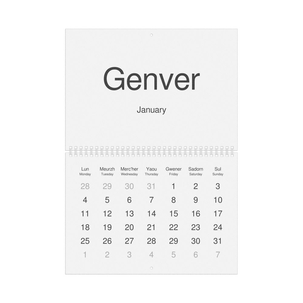 2026 Wall Calendar, Breton-Labeled, Sunday-Start Layout, Poster / Wall Print, 23.4 x 33.1 in (59.4 x 84.1 cm)