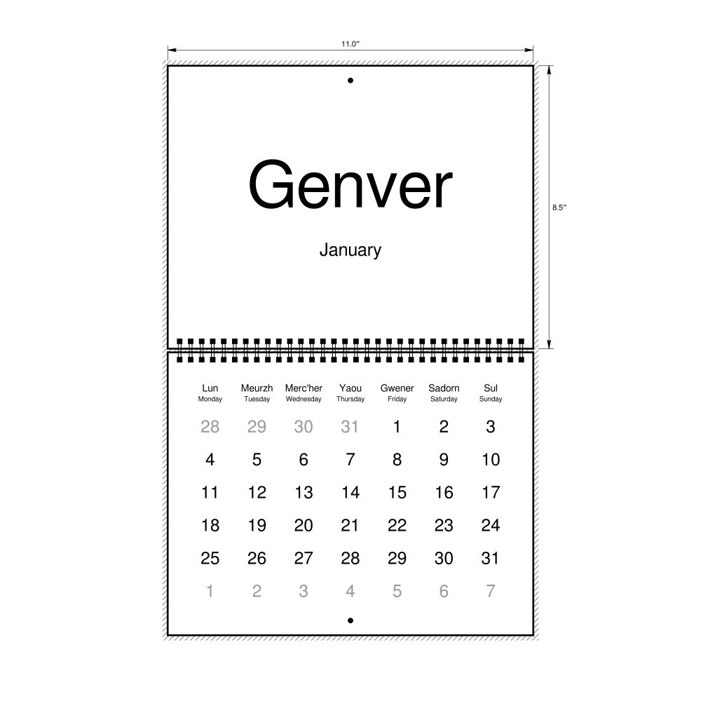 2027 Wall CalendarBreton/English-Labeled, Monday-Start Layout, Wire-Bound, 11 x 8.5 in (27.9 x 21.6 cm)