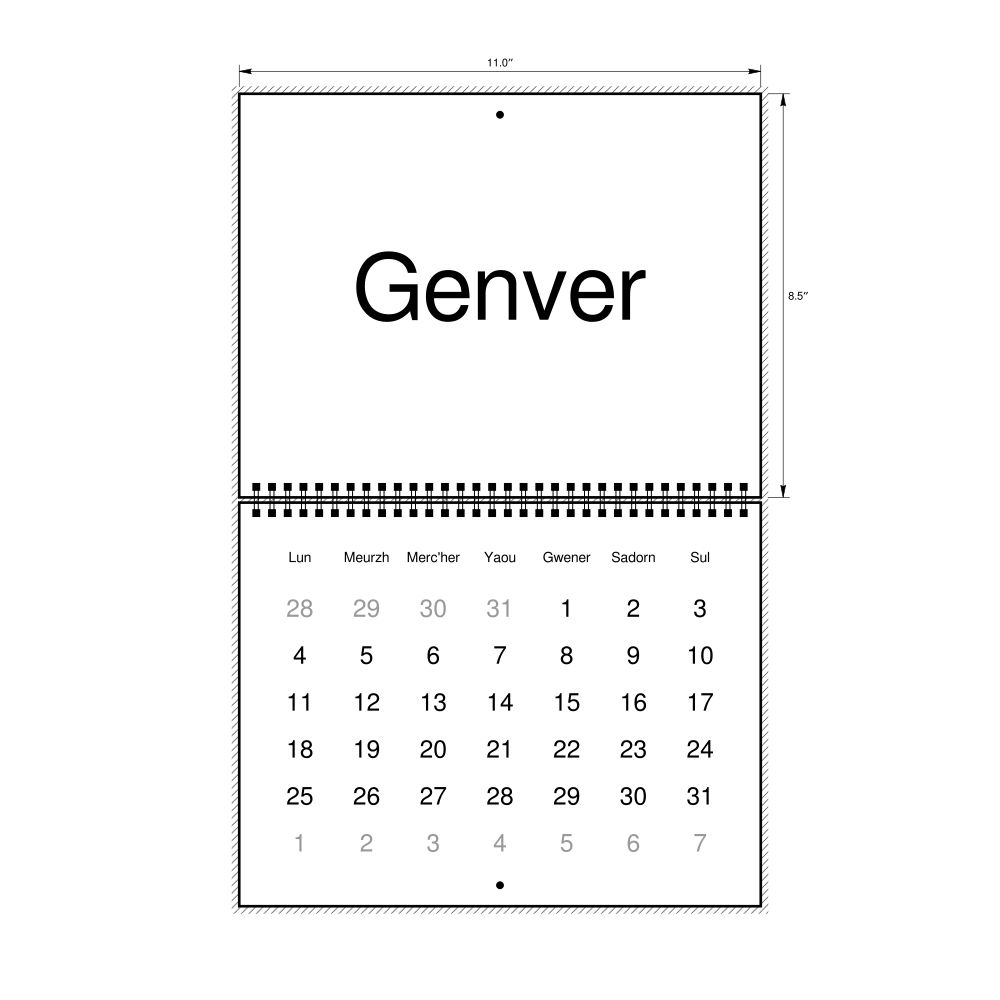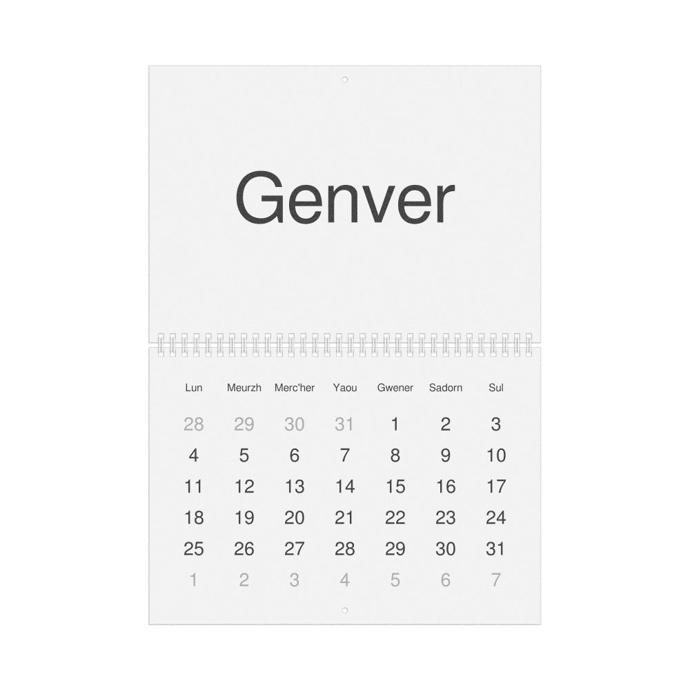 - Breton heritage speakers and cultural connectors - For individuals seeking to maintain a connection to their history, ancestral roots, or the culture associated with the Breton language, the calendar serves as a daily cultural marker. Use it in your home, office, library, or museum as a link to linguistic and cultural identity that integrates Breton into your everyday life. Familiar language script and naming conventions may also provide a sense of home in a foreign environment.
