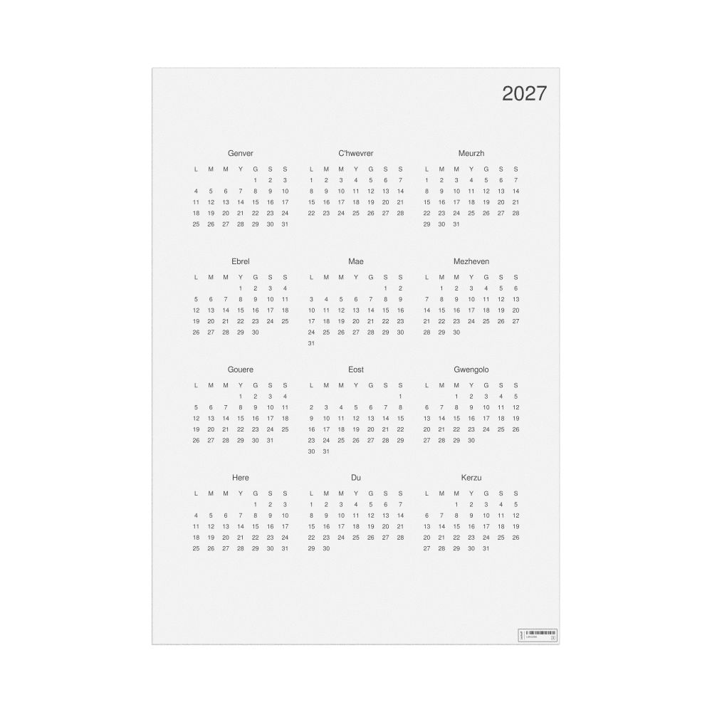 - Breton heritage speakers and cultural connectors - For individuals seeking to maintain a connection to their history, ancestral roots, or the culture associated with the Breton language, the calendar serves as a daily cultural marker. Use it in your home, office, library, or museum as a link to linguistic and cultural identity that integrates Breton into your everyday life. Familiar language script and naming conventions may also provide a sense of home in a foreign environment.