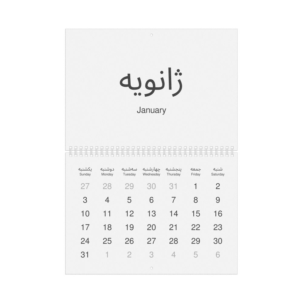 2027 Wall Calendar, Persian-Labeled, Monday-Start Layout, Wire-Bound, 11.7 x 8.3 in (29.7 x 21.0 cm)