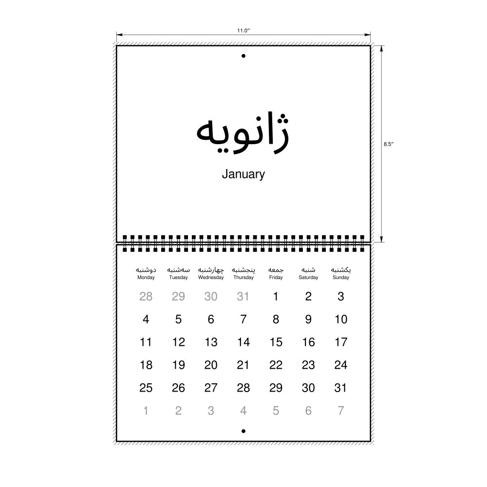 2027 Wall CalendarPersian/English-Labeled, Monday-Start Layout, Wire-Bound, 11 x 8.5 in (27.9 x 21.6 cm)