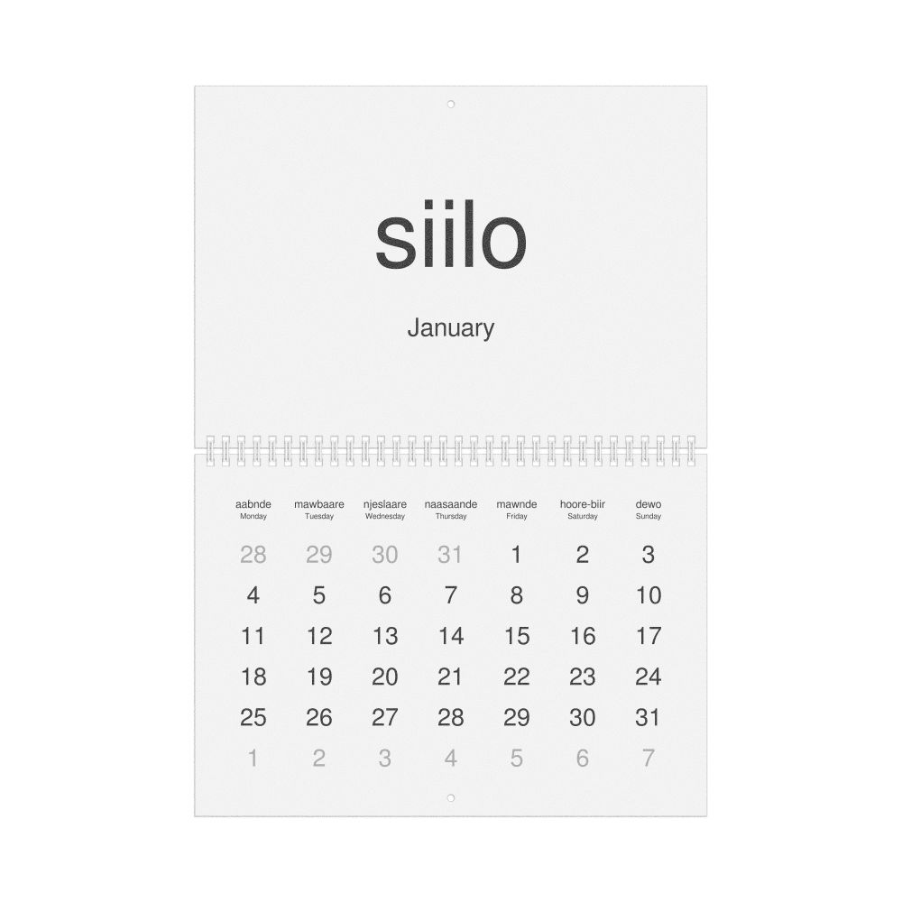 2026 Wall Calendar, Fula/English-Labeled, Sunday-Start Layout, Wire-Bound, 11.7 x 8.3 in (29.7 x 21.0 cm)