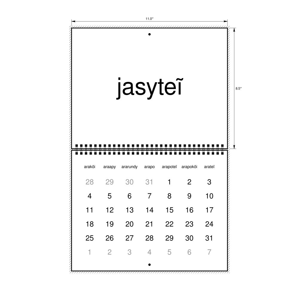 • Guarani heritage speakers and cultural connectors - For individuals seeking to maintain a connection to their history, ancestral roots, or the culture associated with the Guarani language, the calendar serves as a daily cultural marker. Use it in your home, office, library, or museum as a link to linguistic and cultural identity that integrates Guarani into your everyday life. Familiar language script and naming conventions may also provide a sense of home in a foreign environment.