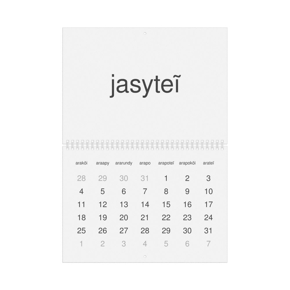 - Guarani heritage speakers and cultural connectors - For individuals seeking to maintain a connection to their history, ancestral roots, or the culture associated with the Guarani language, the calendar serves as a daily cultural marker. Use it in your home, office, library, or museum as a link to linguistic and cultural identity that integrates Guarani into your everyday life. Familiar language script and naming conventions may also provide a sense of home in a foreign environment.