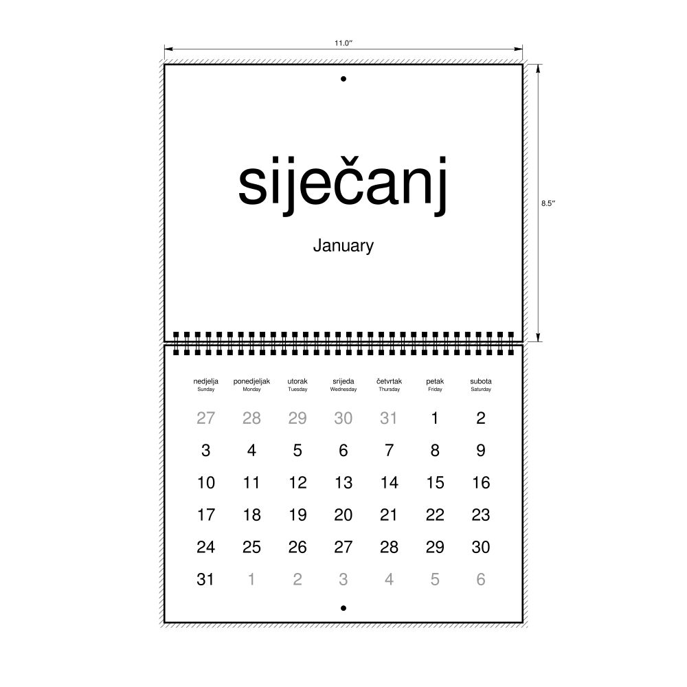 2027 Wall CalendarCroatian/English-Labeled, Sunday-Start Layout, Wire-Bound, 11 x 8.5 in (27.9 x 21.6 cm)