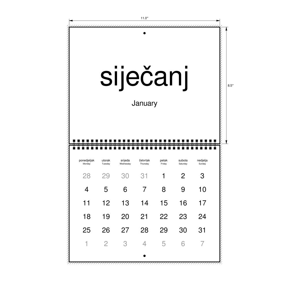 2027 Wall CalendarCroatian/English-Labeled, Monday-Start Layout, Wire-Bound, 11 x 8.5 in (27.9 x 21.6 cm)