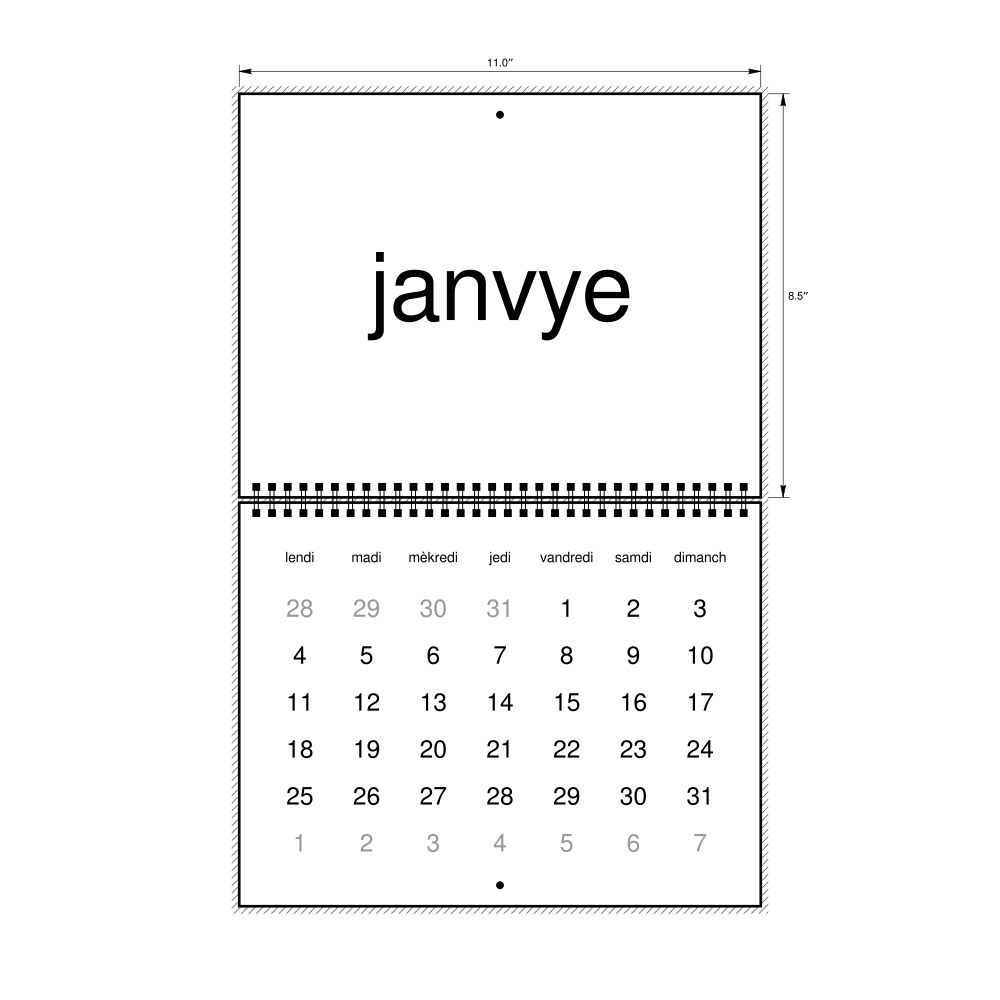 - Gift buyers - Choose this calendar if you are looking for specific, personalized gift ideas for friends and colleagues who have an affinity for the Haitian Creole language or its culture. A niche, thoughtful alternative to generic stationery, this Haitian Creole calendar demonstrates that you understand the recipient's specific interest in the language and culture.