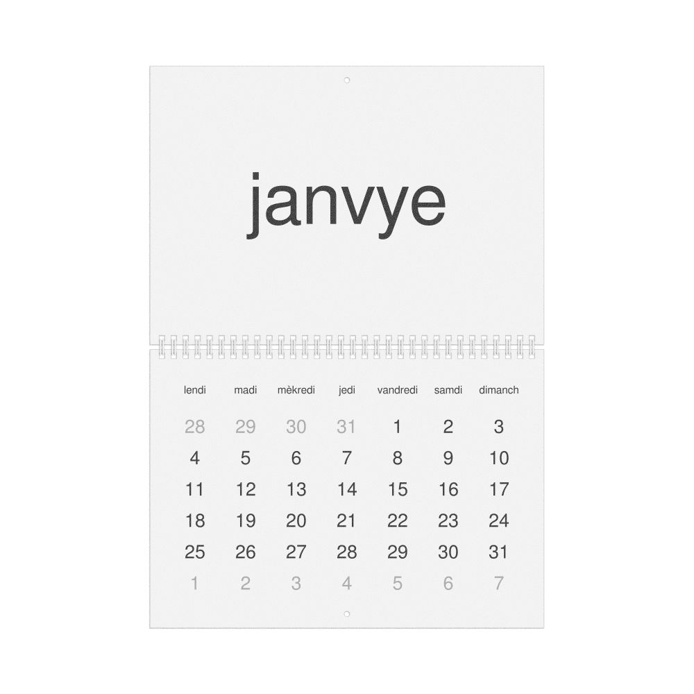 - Haitian Creole heritage speakers and cultural connectors - For individuals seeking to maintain a connection to their history, ancestral roots, or the culture associated with the Haitian Creole language, the calendar serves as a daily cultural marker. Use it in your home, office, library, or museum as a link to linguistic and cultural identity that integrates Haitian Creole into your everyday life. Familiar language script and naming conventions may also provide a sense of home in a foreign environment.
