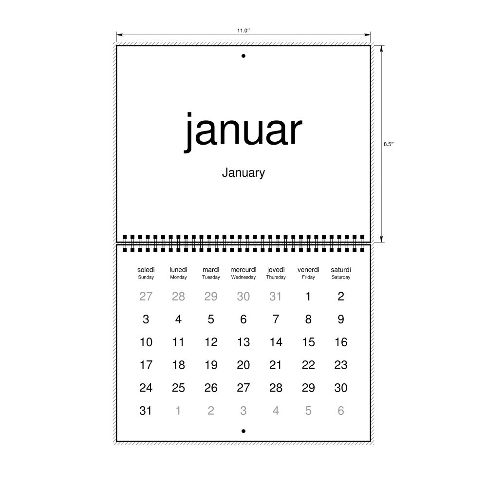 2027 Wall CalendarInterlingue/English-Labeled, Sunday-Start Layout, Wire-Bound, 11 x 8.5 in (27.9 x 21.6 cm)