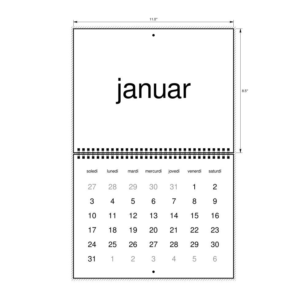 2026 Wall Calendar, Interlingue/English-Labeled, Monday-Start Layout, Wire-Bound, 11 x 8.5 in (27.9 x 21.6 cm)