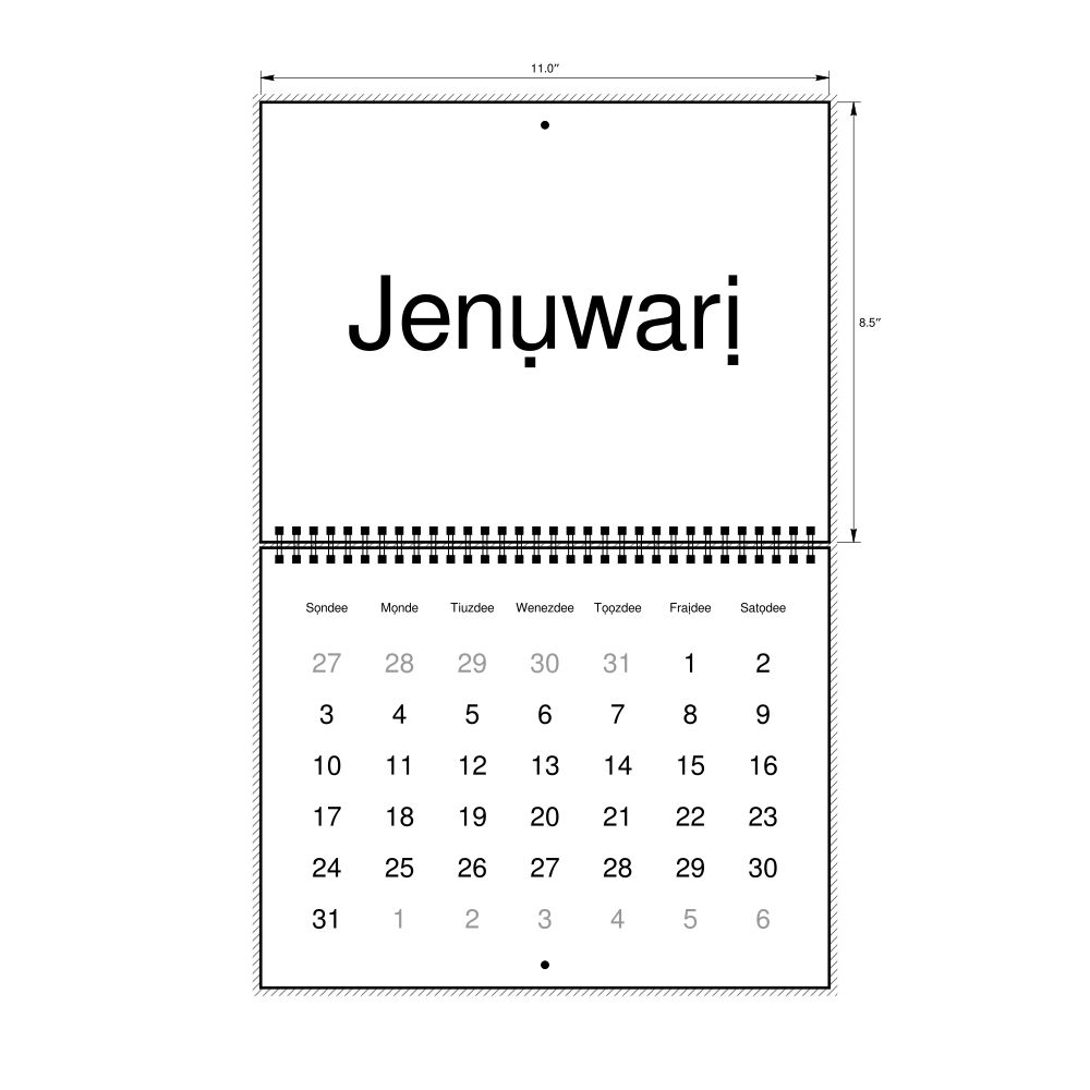 • Linguistics enthusiasts and polyglots - For "language geeks" interested in comparative linguistics or the mechanics of different languages and who value the aesthetic differences in scripts, orthography, and typography of different languages, the Igbo calendar serves as an object of intellectual interest. You can collect calendars for various languages to compare their linguistic roots (e.g., comparing Romance languages vs. Slavic languages). Leskoff's calendars are characterized by specific typographic choices that highlight the orthography and script unique to the target language. Think correct usage of diacritics, characters, and directional writing (left-to-right vs. right-to-left). The minimalist design focuses on legibility and aesthetic appeal of the script itself.