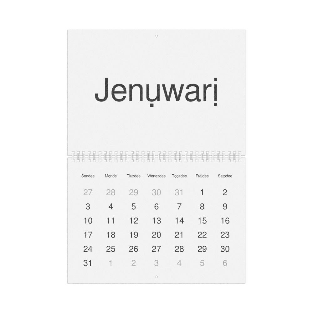- Linguistics enthusiasts and polyglots - For "language geeks" interested in comparative linguistics or the mechanics of different languages and who value the aesthetic differences in scripts, orthography, and typography of different languages, the Igbo calendar serves as an object of intellectual interest. You can collect calendars for various languages to compare their linguistic roots (e.g., comparing Romance languages vs. Slavic languages). Leskoff's calendars are characterized by specific typographic choices that highlight the orthography and script unique to the target language. Think correct usage of diacritics, characters, and directional writing (left-to-right vs. right-to-left). The minimalist design focuses on legibility and aesthetic appeal of the script itself.