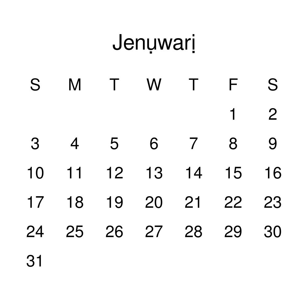 - Linguistics enthusiasts and polyglots - For "language geeks" interested in comparative linguistics or the mechanics of different languages and who value the aesthetic differences in scripts, orthography, and typography of different languages, the Igbo calendar serves as an object of intellectual interest. You can collect calendars for various languages to compare their linguistic roots (e.g., comparing Romance languages vs. Slavic languages). Leskoff's calendars are characterized by specific typographic choices that highlight the orthography and script unique to the target language. Think correct usage of diacritics, characters, and directional writing (left-to-right vs. right-to-left). The minimalist design focuses on legibility and aesthetic appeal of the script itself.
