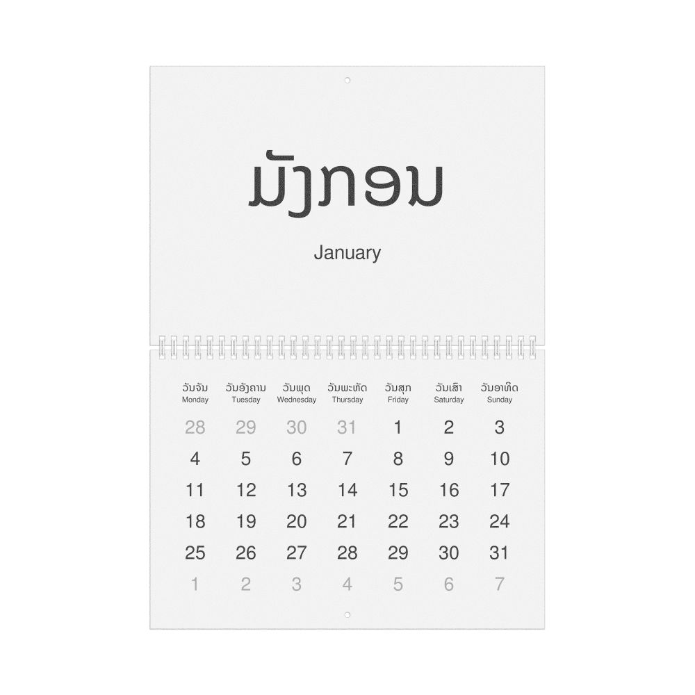 2026 Wall Calendar, Lao-Labeled, Monday-Start Layout, Wire-Bound, 11.7 x 8.3 in (29.7 x 21.0 cm)