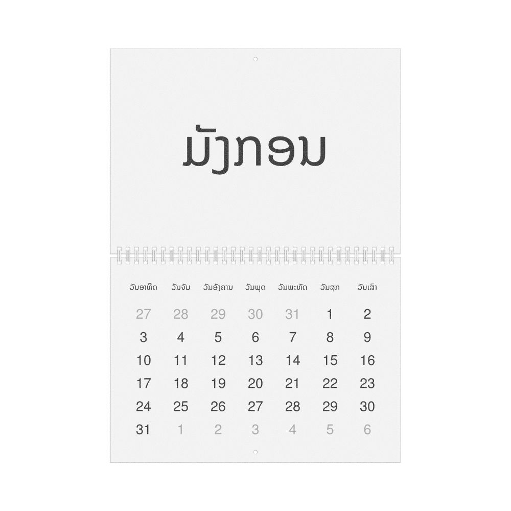 - Lao heritage speakers and cultural connectors - For individuals seeking to maintain a connection to their history, ancestral roots, or the culture associated with the Lao language, the calendar serves as a daily cultural marker. Use it in your home, office, library, or museum as a link to linguistic and cultural identity that integrates Lao into your everyday life. Familiar language script and naming conventions may also provide a sense of home in a foreign environment.