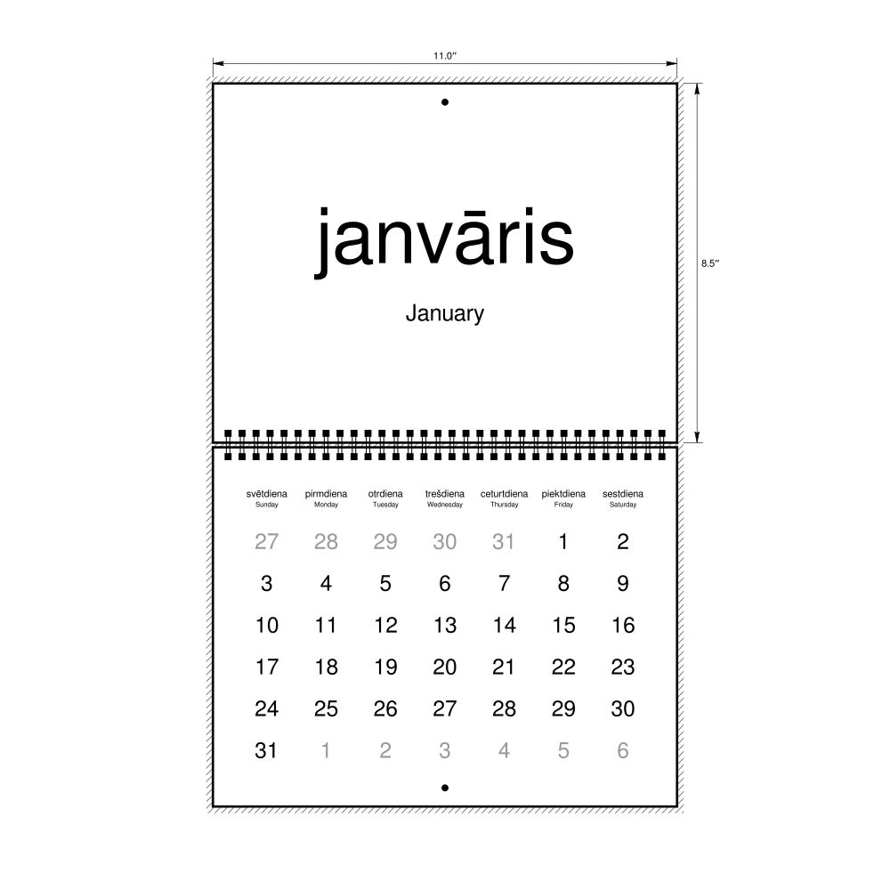 2027 Wall CalendarLatvian/English-Labeled, Sunday-Start Layout, Wire-Bound, 11 x 8.5 in (27.9 x 21.6 cm)