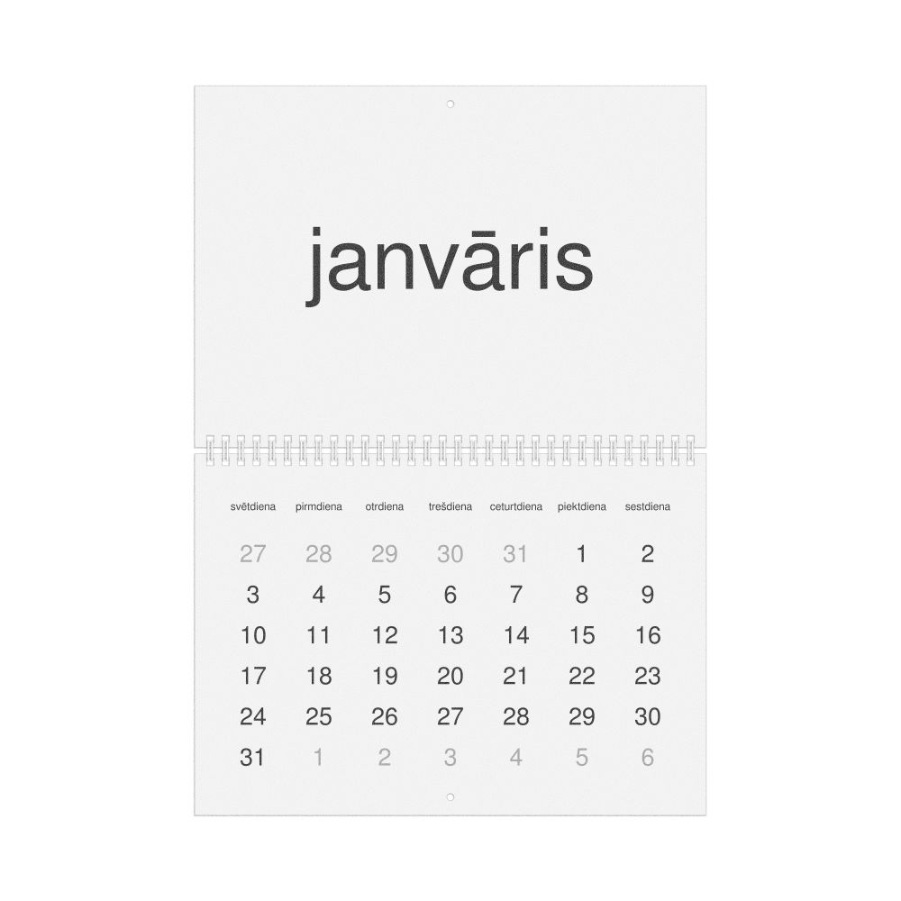 • Linguistics enthusiasts and polyglots - For "language geeks" interested in comparative linguistics or the mechanics of different languages and who value the aesthetic differences in scripts, orthography, and typography of different languages, the Latvian calendar serves as an object of intellectual interest. You can collect calendars for various languages to compare their linguistic roots (e.g., comparing Romance languages vs. Slavic languages). Leskoff's calendars are characterized by specific typographic choices that highlight the orthography and script unique to the target language. Think correct usage of diacritics, characters, and directional writing (left-to-right vs. right-to-left). The minimalist design focuses on legibility and aesthetic appeal of the script itself.