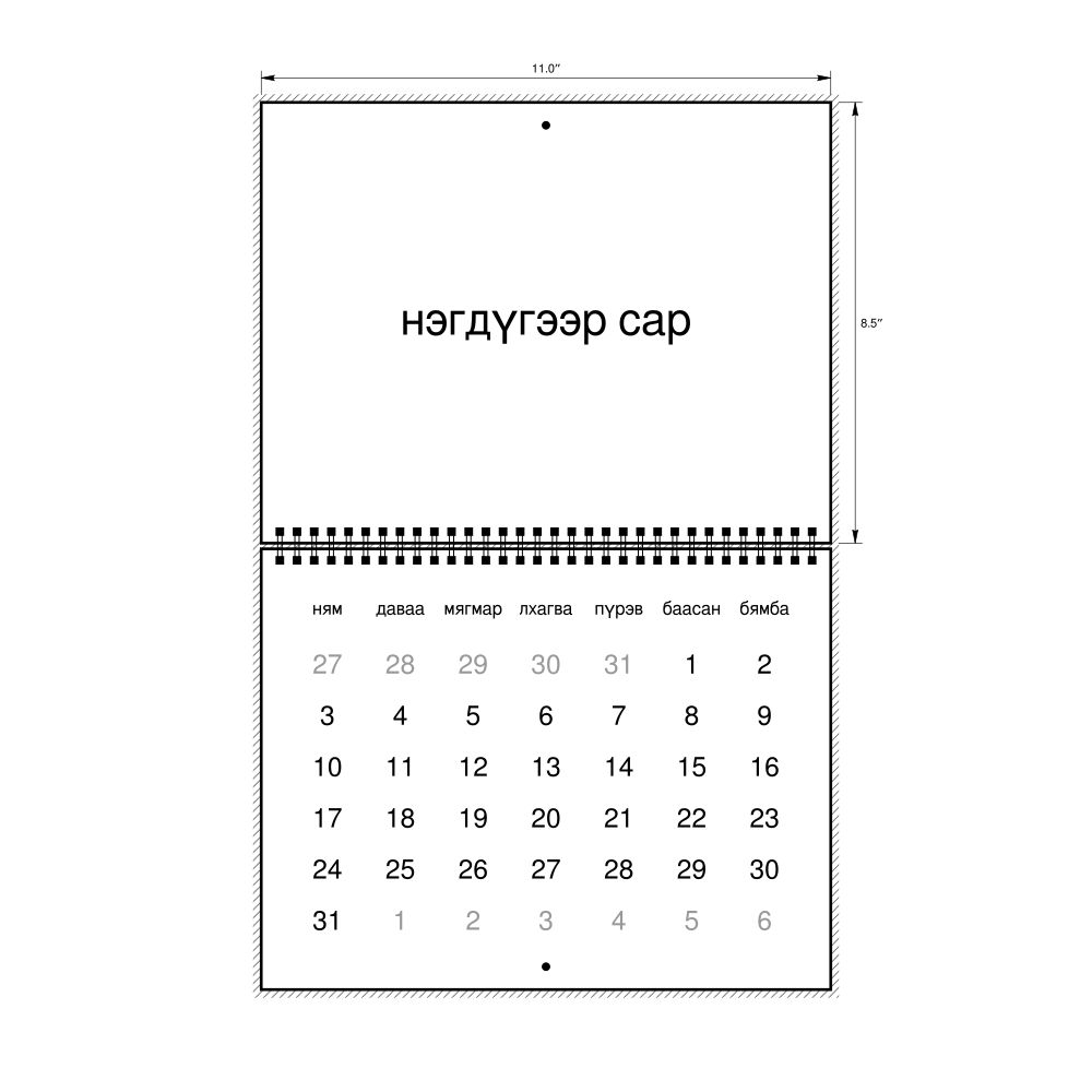 • Mongolian heritage speakers and cultural connectors - For individuals seeking to maintain a connection to their history, ancestral roots, or the culture associated with the Mongolian language, the calendar serves as a daily cultural marker. Use it in your home, office, library, or museum as a link to linguistic and cultural identity that integrates Mongolian into your everyday life. Familiar language script and naming conventions may also provide a sense of home in a foreign environment.