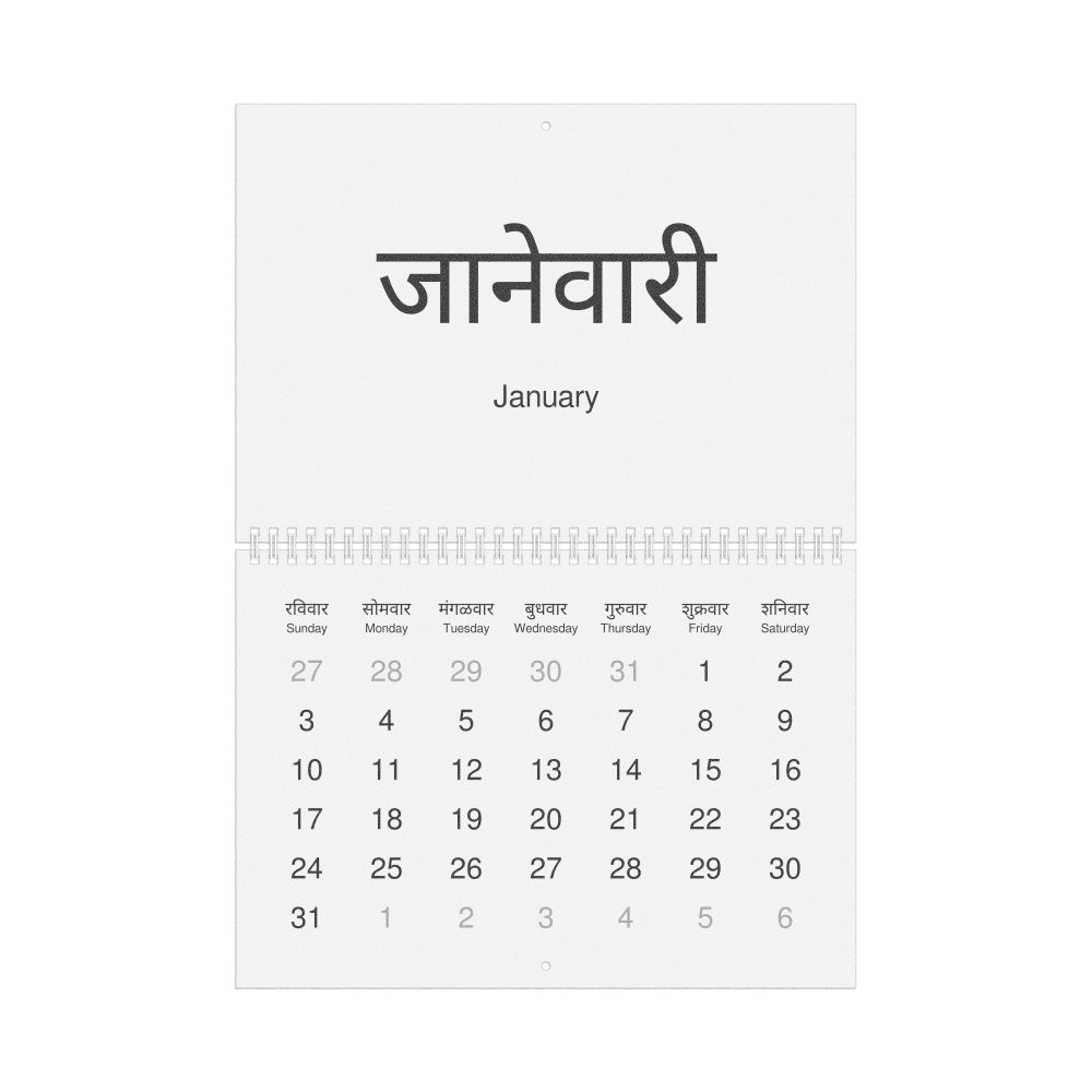 2027 Wall Calendar, Marathi/English-Labeled, Monday-Start Layout, Wire-Bound, 11.7 x 8.3 in (29.7 x 21.0 cm)