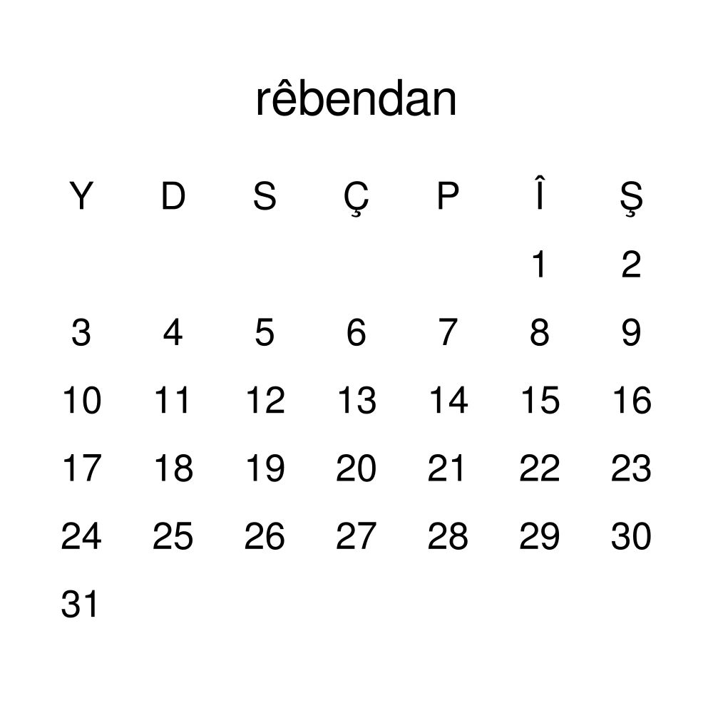 - Kurdish heritage speakers and cultural connectors - For individuals seeking to maintain a connection to their history, ancestral roots, or the culture associated with the Kurdish language, the calendar serves as a daily cultural marker. Use it in your home, office, library, or museum as a link to linguistic and cultural identity that integrates Kurdish into your everyday life. Familiar language script and naming conventions may also provide a sense of home in a foreign environment.