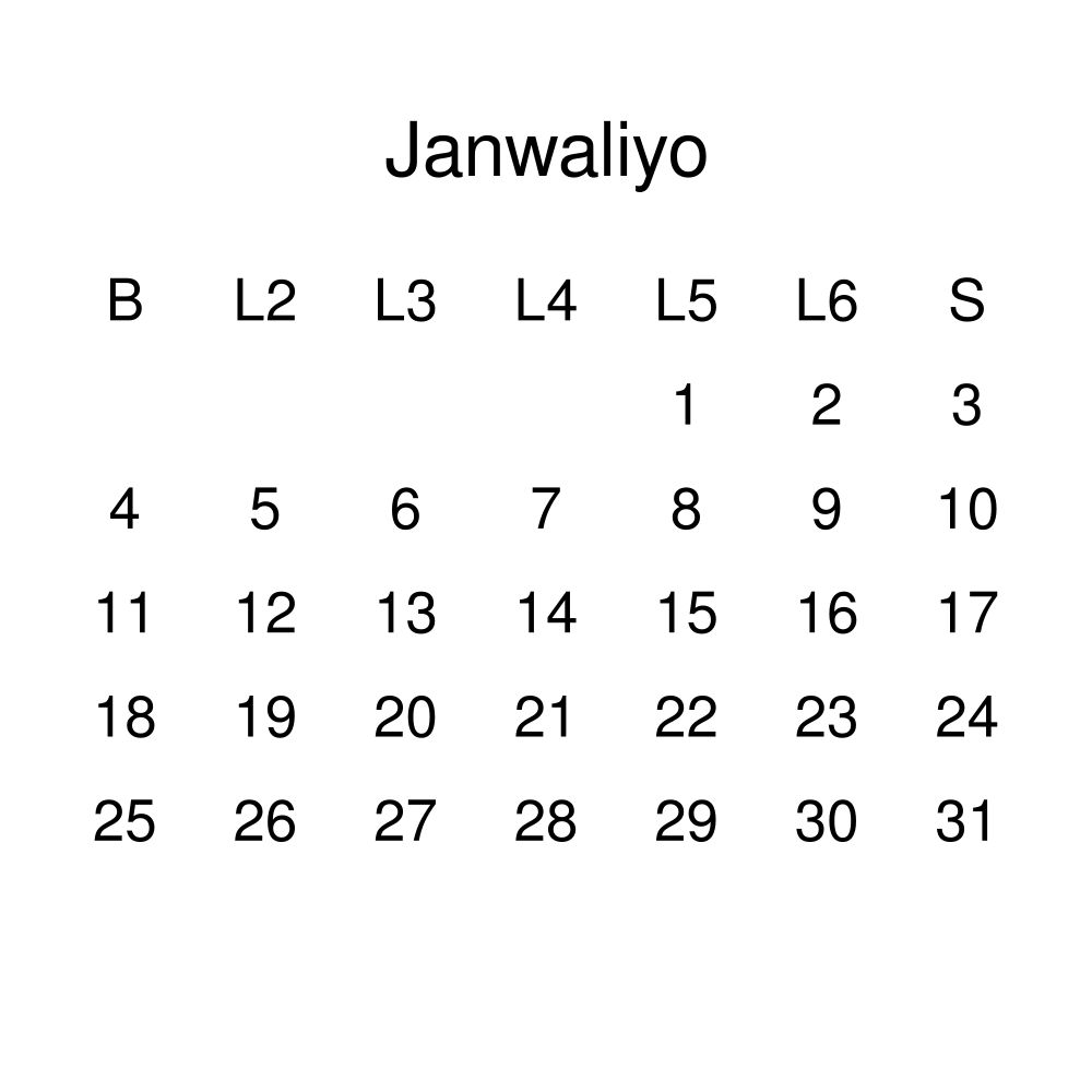 - Luganda heritage speakers and cultural connectors - For individuals seeking to maintain a connection to their history, ancestral roots, or the culture associated with the Luganda language, the calendar serves as a daily cultural marker. Use it in your home, office, library, or museum as a link to linguistic and cultural identity that integrates Luganda into your everyday life. Familiar language script and naming conventions may also provide a sense of home in a foreign environment.