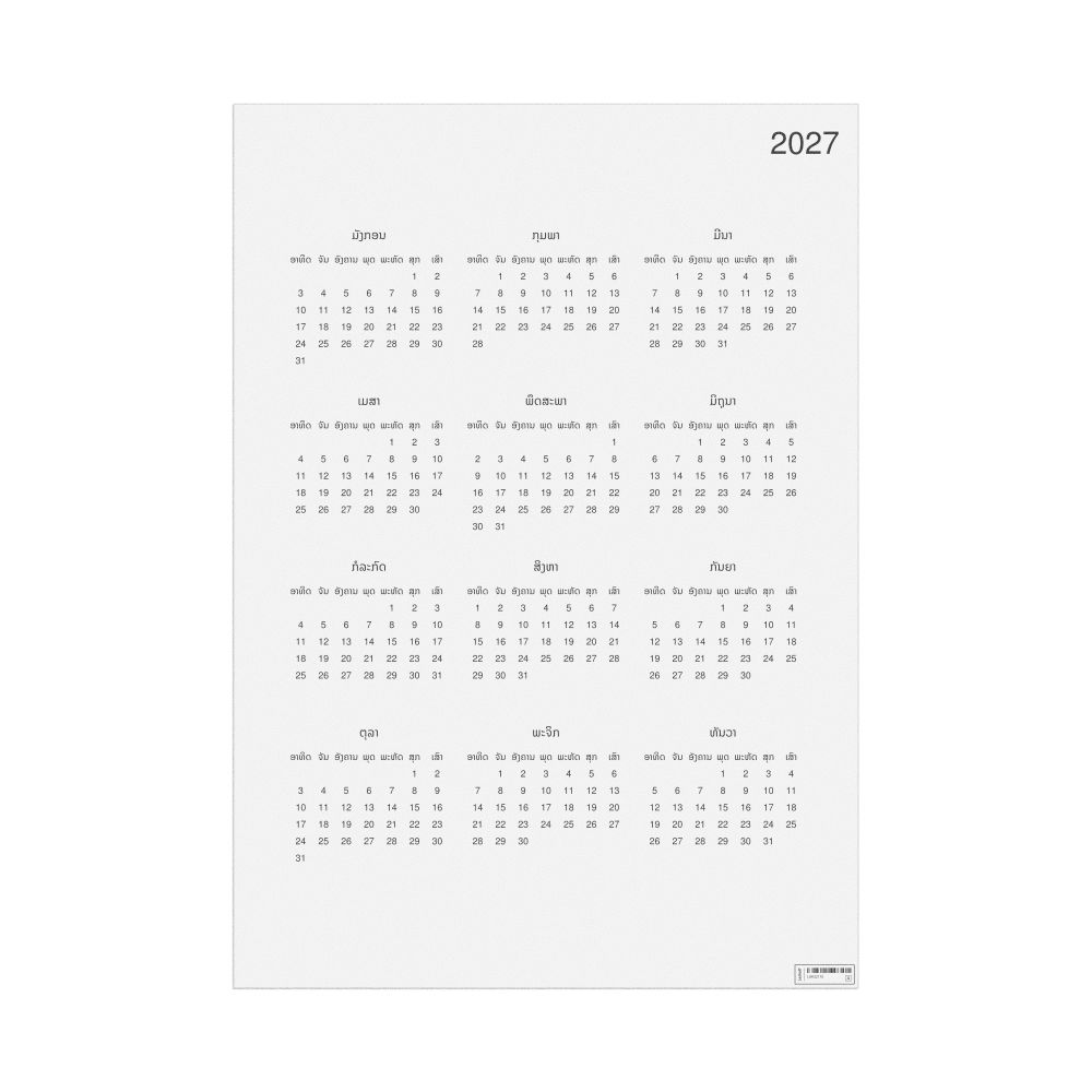 Leskoff 2027 Wall Calendar, Lao-Labeled, Sunday-Start Layout, Poster / Wall Print, 23.4 x 33.1 in (59.4 x 84.1 cm), image 1 of 1