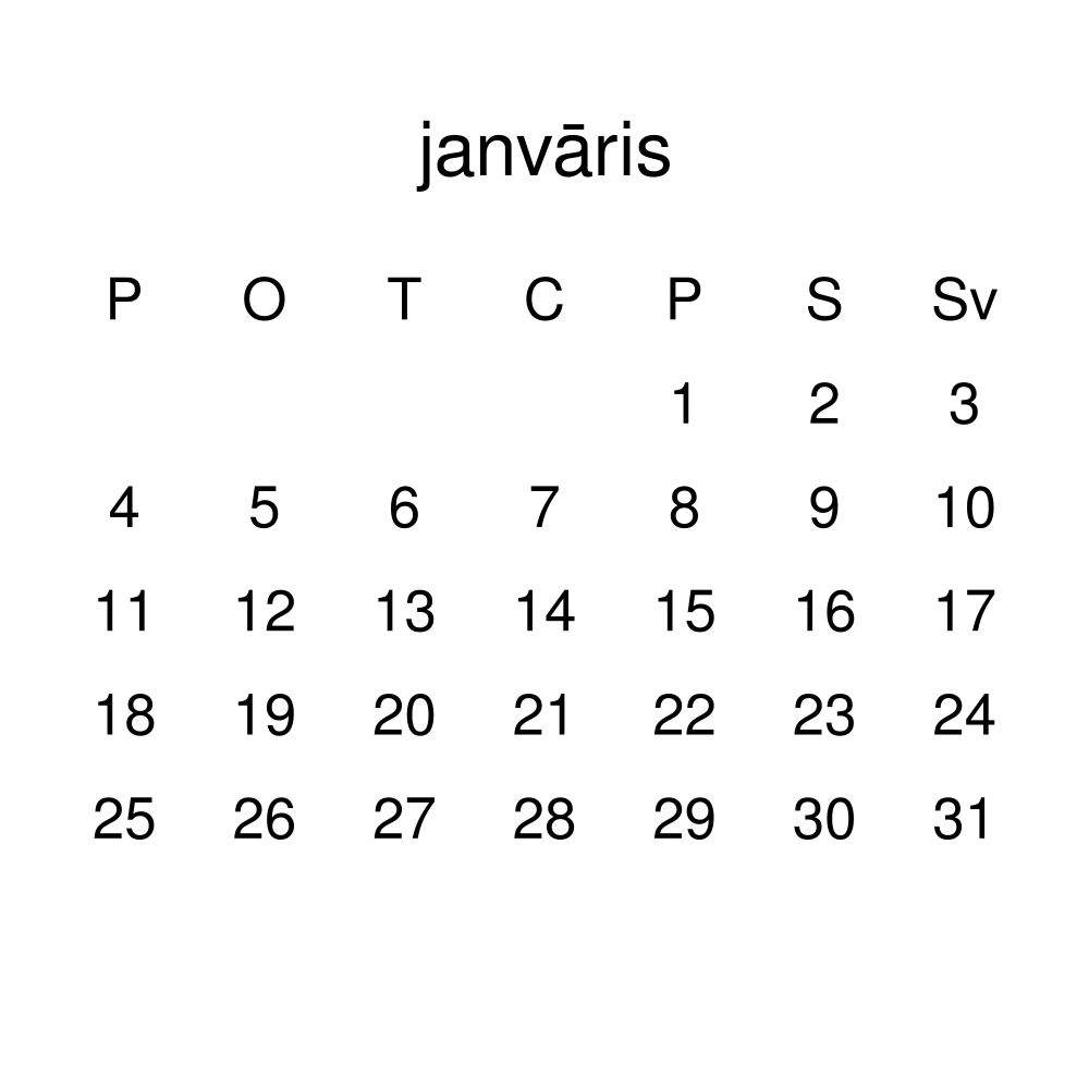 • Latvian heritage speakers and cultural connectors - For individuals seeking to maintain a connection to their history, ancestral roots, or the culture associated with the Latvian language, the calendar serves as a daily cultural marker. Use it in your home, office, library, or museum as a link to linguistic and cultural identity that integrates Latvian into your everyday life. Familiar language script and naming conventions may also provide a sense of home in a foreign environment.