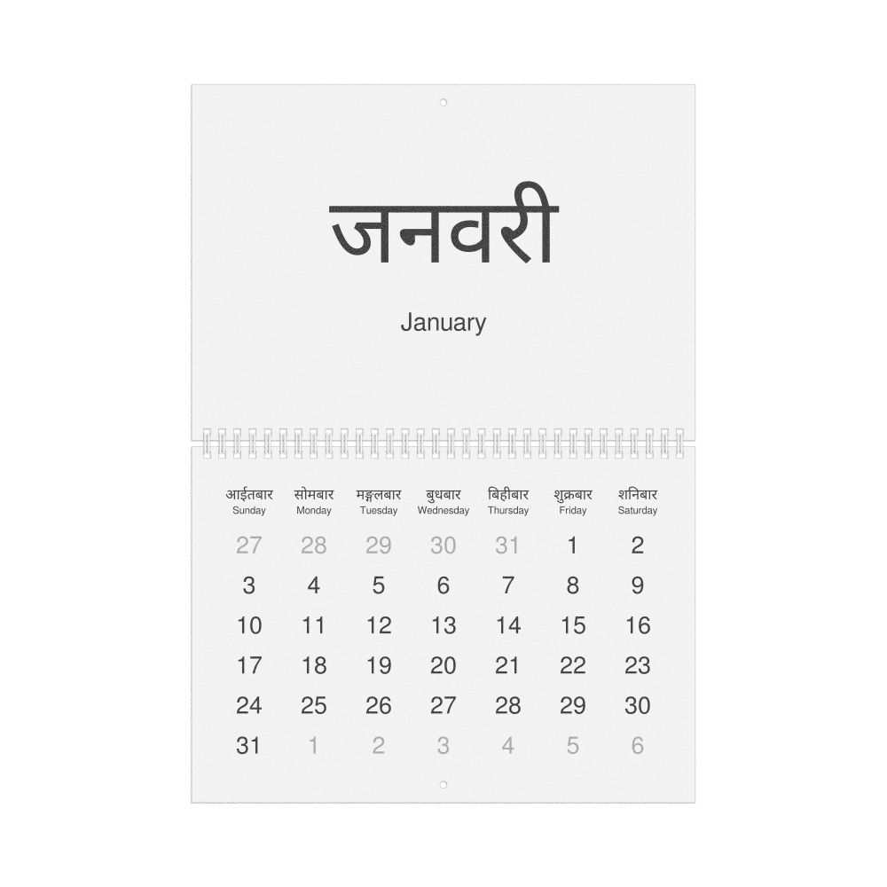2027 Wall Calendar, Nepali-Labeled, Sunday-Start Layout, Poster / Wall Print, 23.4 x 33.1 in (59.4 x 84.1 cm)