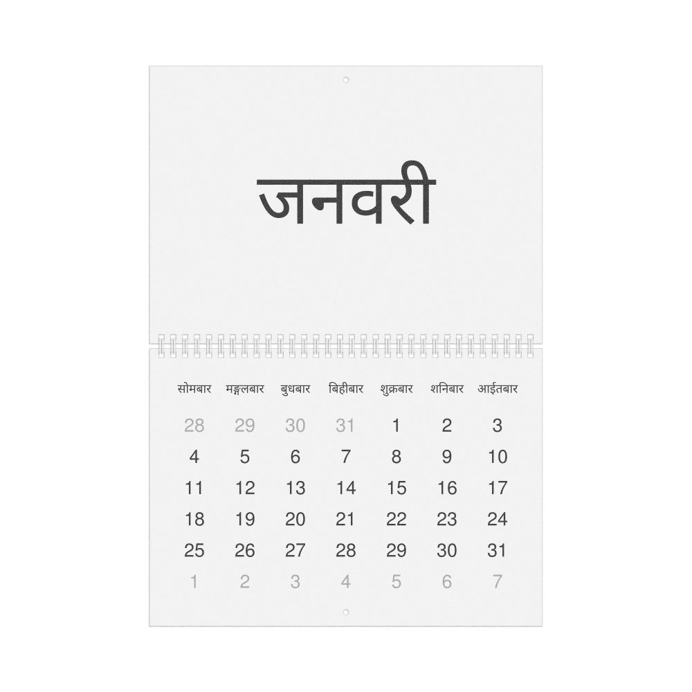 • Nepali heritage speakers and cultural connectors - For individuals seeking to maintain a connection to their history, ancestral roots, or the culture associated with the Nepali language, the calendar serves as a daily cultural marker. Use it in your home, office, library, or museum as a link to linguistic and cultural identity that integrates Nepali into your everyday life. Familiar language script and naming conventions may also provide a sense of home in a foreign environment.