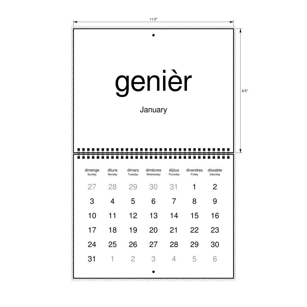 2026 Wall Calendar, Occitan-Labeled, Sunday-Start Layout, Wire-Bound, 11 x 8.5 in (27.9 x 21.6 cm)