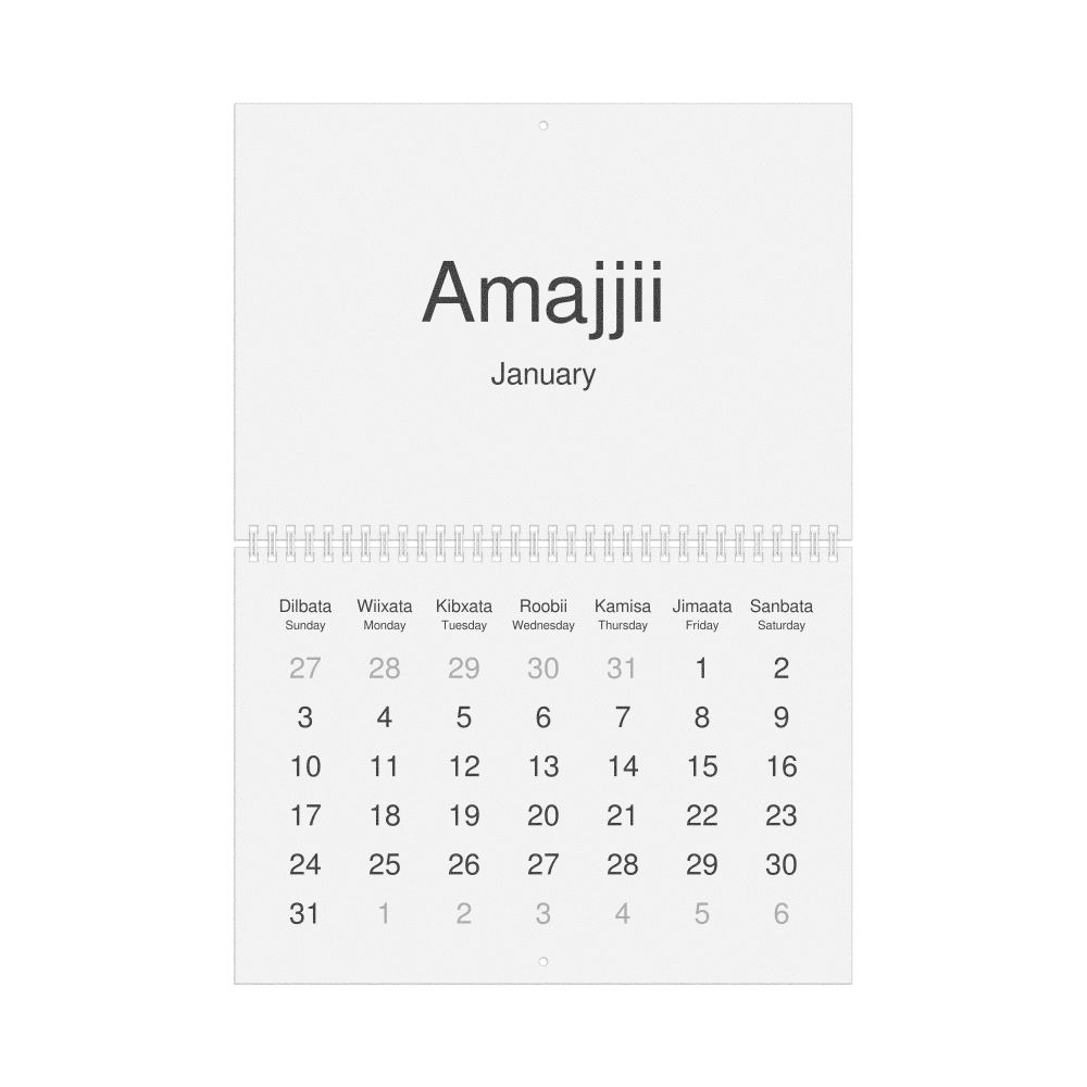 2027 Wall Calendar, Oromo-Labeled, Sunday-Start Layout, Poster / Wall Print, 23.4 x 33.1 in (59.4 x 84.1 cm)
