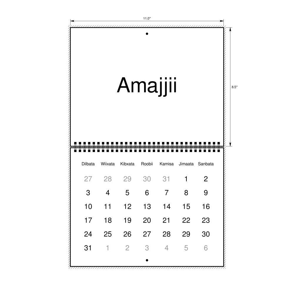 2027 Wall Calendar, Oromo-Labeled, Sunday-Start Layout, Wire-Bound, 11 x 8.5 in (27.9 x 21.6 cm)