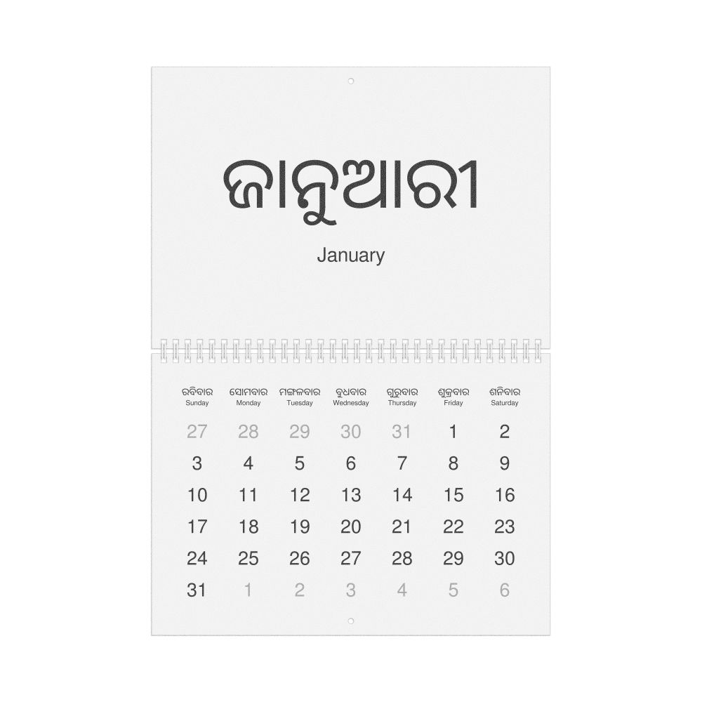 2026 Wall Calendar, Odia-Labeled, Sunday-Start Layout, Poster / Wall Print, 23.4 x 33.1 in (59.4 x 84.1 cm)