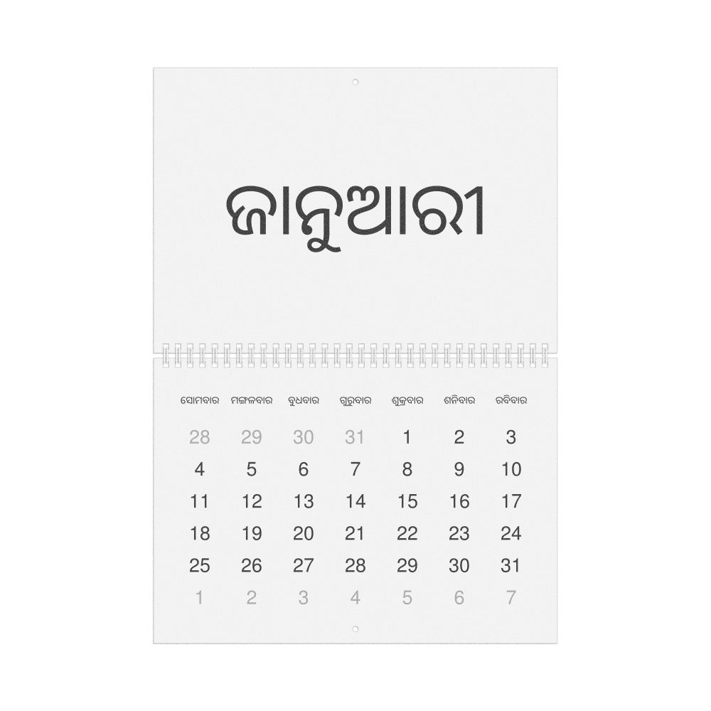 - Linguistics enthusiasts and polyglots - For "language geeks" interested in comparative linguistics or the mechanics of different languages and who value the aesthetic differences in scripts, orthography, and typography of different languages, the Odia calendar serves as an object of intellectual interest. You can collect calendars for various languages to compare their linguistic roots (e.g., comparing Romance languages vs. Slavic languages). Leskoff's calendars are characterized by specific typographic choices that highlight the orthography and script unique to the target language. Think correct usage of diacritics, characters, and directional writing (left-to-right vs. right-to-left). The minimalist design focuses on legibility and aesthetic appeal of the script itself.
