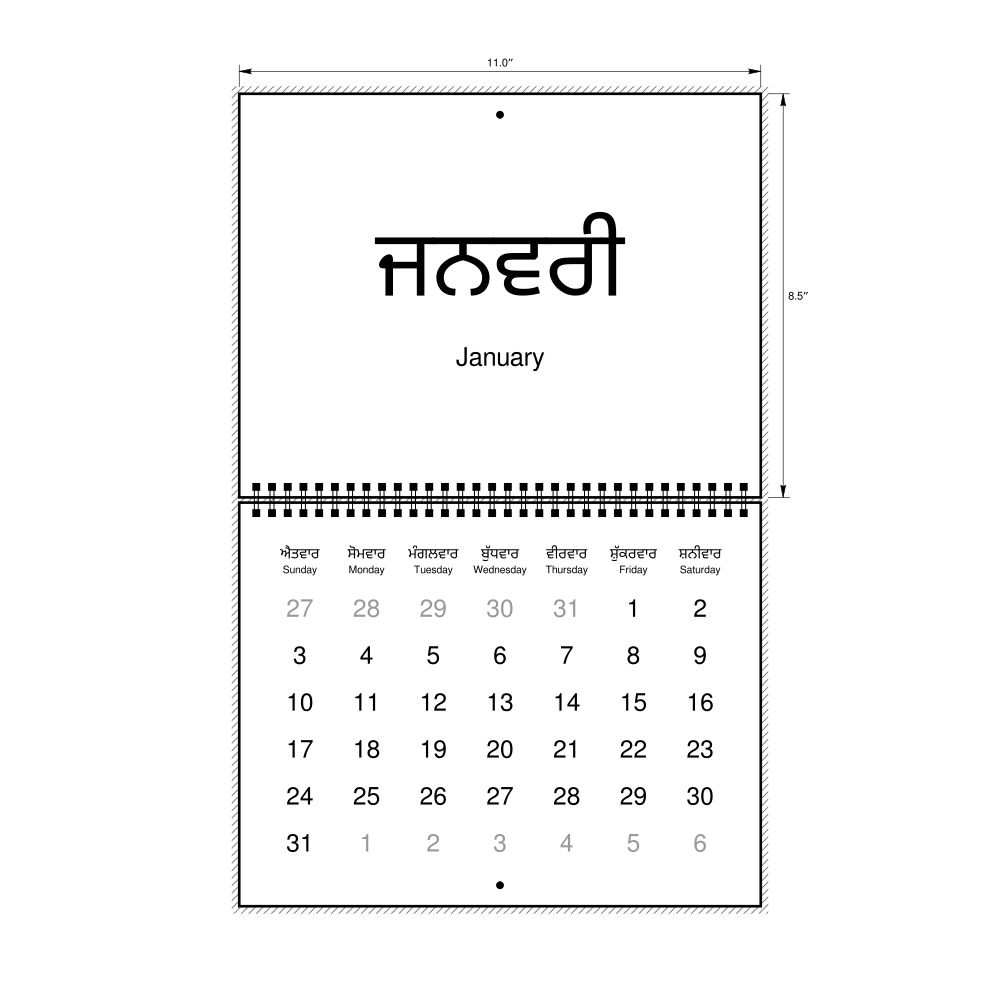 2027 Wall CalendarPunjabi/English-Labeled, Sunday-Start Layout, Wire-Bound, 11 x 8.5 in (27.9 x 21.6 cm)