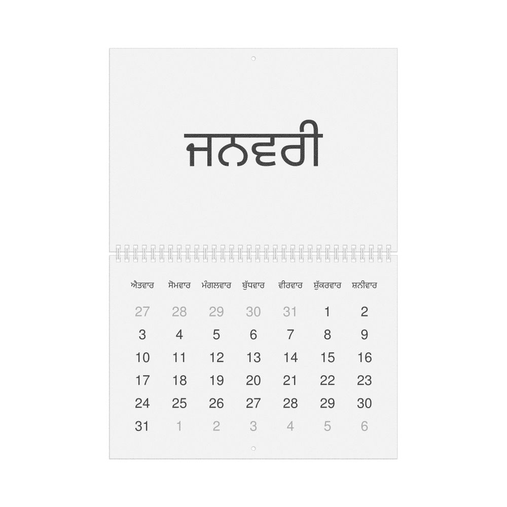 - Gift buyers - Choose this calendar if you are looking for specific, personalized gift ideas for friends and colleagues who have an affinity for the Punjabi language or its culture. A niche, thoughtful alternative to generic stationery, this Punjabi calendar demonstrates that you understand the recipient's specific interest in the language and culture.