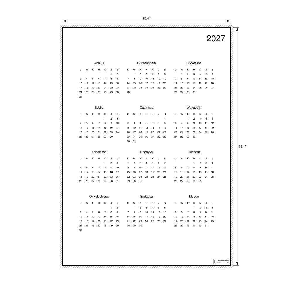 - Oromo heritage speakers and cultural connectors - For individuals seeking to maintain a connection to their history, ancestral roots, or the culture associated with the Oromo language, the calendar serves as a daily cultural marker. Use it in your home, office, library, or museum as a link to linguistic and cultural identity that integrates Oromo into your everyday life. Familiar language script and naming conventions may also provide a sense of home in a foreign environment.