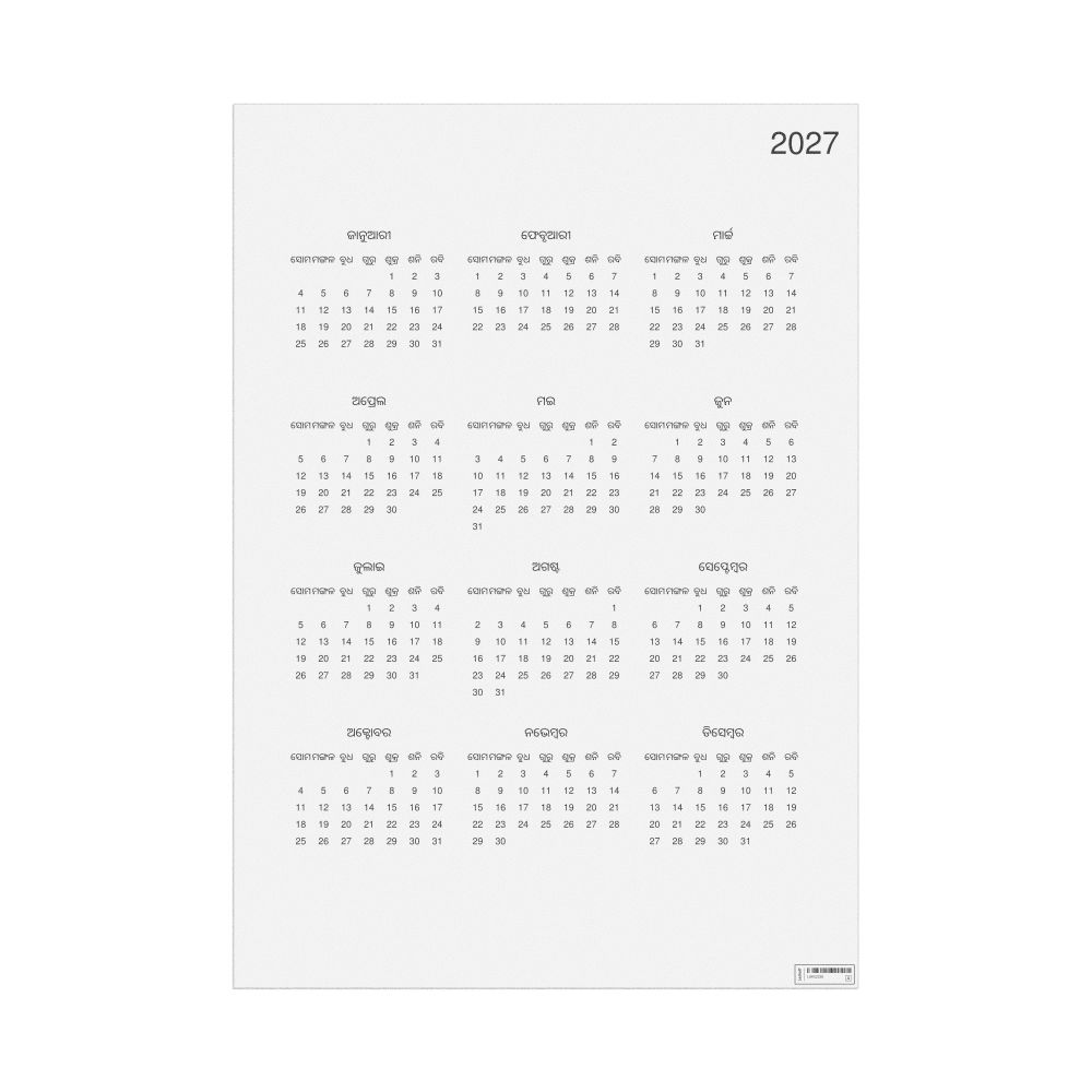 - Linguistics enthusiasts and polyglots - For "language geeks" interested in comparative linguistics or the mechanics of different languages and who value the aesthetic differences in scripts, orthography, and typography of different languages, the Odia calendar serves as an object of intellectual interest. You can collect calendars for various languages to compare their linguistic roots (e.g., comparing Romance languages vs. Slavic languages). Leskoff's calendars are characterized by specific typographic choices that highlight the orthography and script unique to the target language. Think correct usage of diacritics, characters, and directional writing (left-to-right vs. right-to-left). The minimalist design focuses on legibility and aesthetic appeal of the script itself.