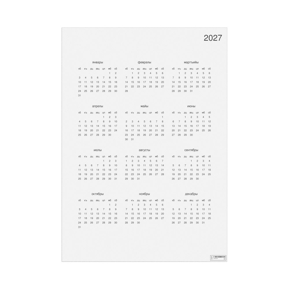 - Linguistics enthusiasts and polyglots - For "language geeks" interested in comparative linguistics or the mechanics of different languages and who value the aesthetic differences in scripts, orthography, and typography of different languages, the Ossetian calendar serves as an object of intellectual interest. You can collect calendars for various languages to compare their linguistic roots (e.g., comparing Romance languages vs. Slavic languages). Leskoff's calendars are characterized by specific typographic choices that highlight the orthography and script unique to the target language. Think correct usage of diacritics, characters, and directional writing (left-to-right vs. right-to-left). The minimalist design focuses on legibility and aesthetic appeal of the script itself.