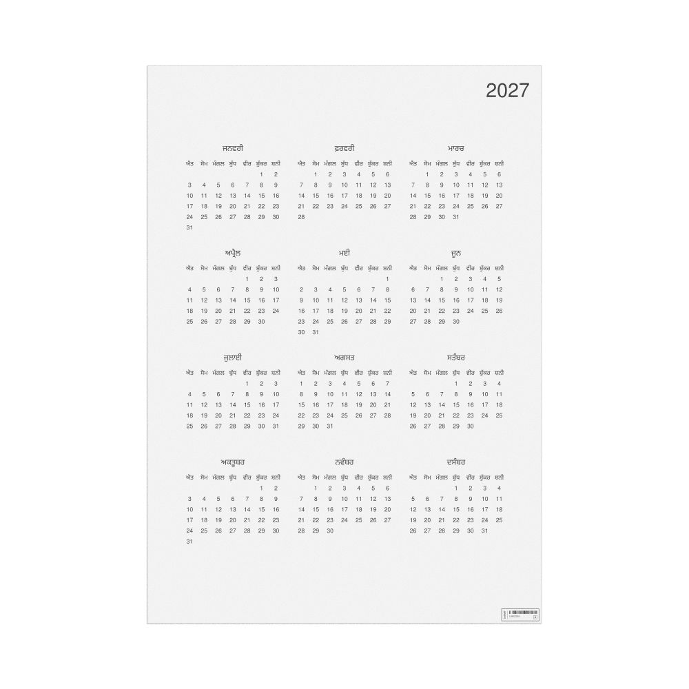 - Punjabi heritage speakers and cultural connectors - For individuals seeking to maintain a connection to their history, ancestral roots, or the culture associated with the Punjabi language, the calendar serves as a daily cultural marker. Use it in your home, office, library, or museum as a link to linguistic and cultural identity that integrates Punjabi into your everyday life. Familiar language script and naming conventions may also provide a sense of home in a foreign environment.