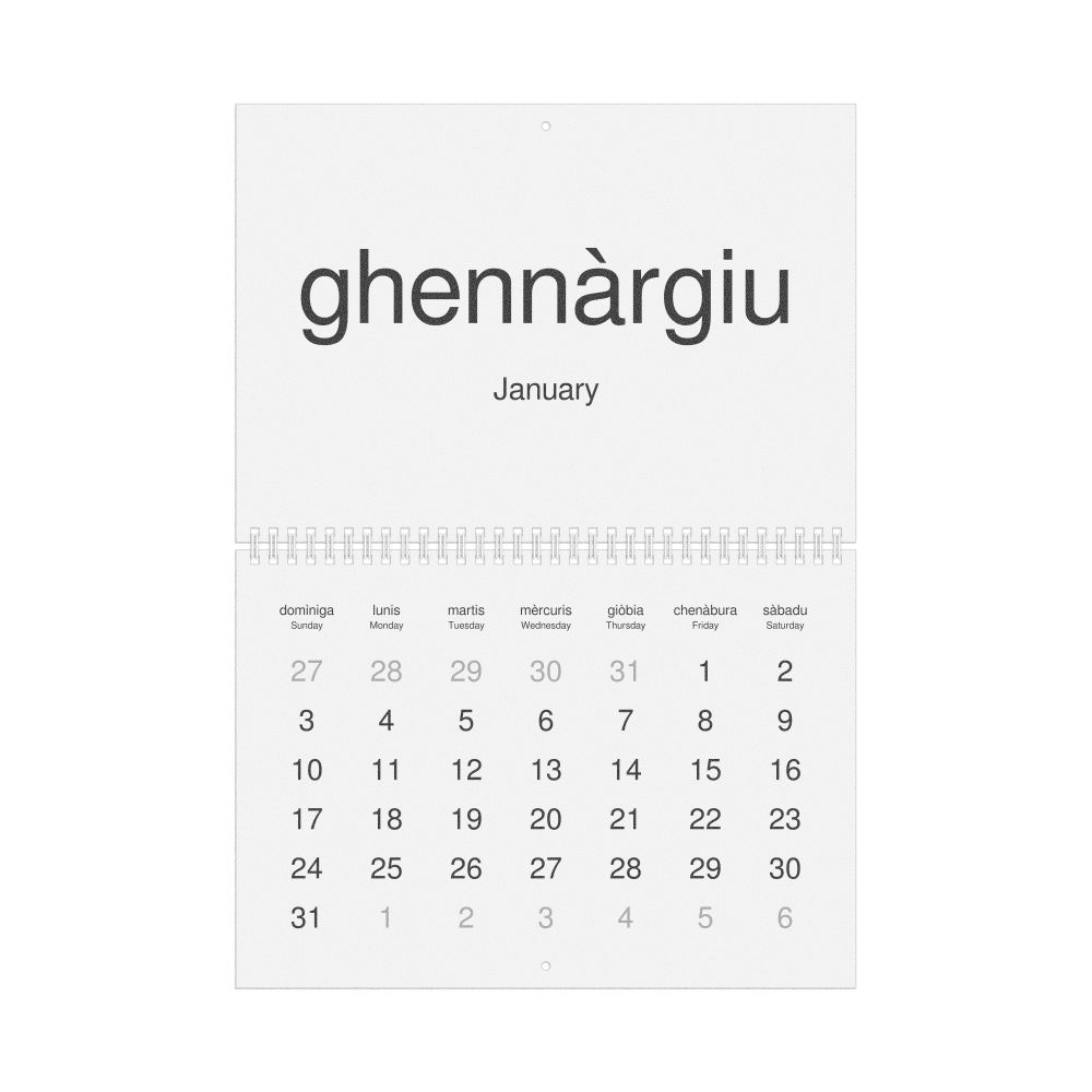 2026 Wall Calendar, Sardinian/English-Labeled, Sunday-Start Layout, Wire-Bound, 11.7 x 8.3 in (29.7 x 21.0 cm)