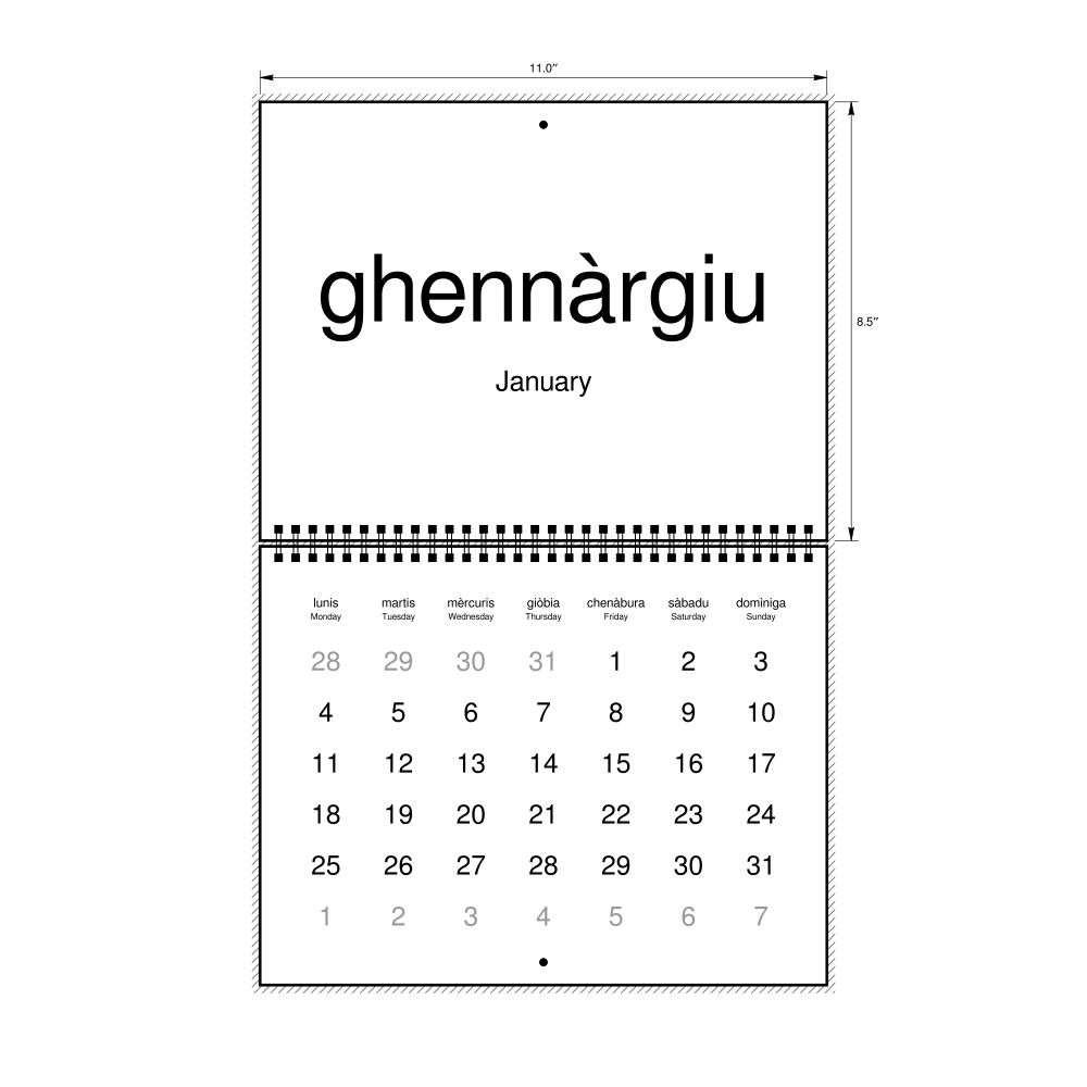 2027 Wall CalendarSardinian/English-Labeled, Monday-Start Layout, Wire-Bound, 11 x 8.5 in (27.9 x 21.6 cm)