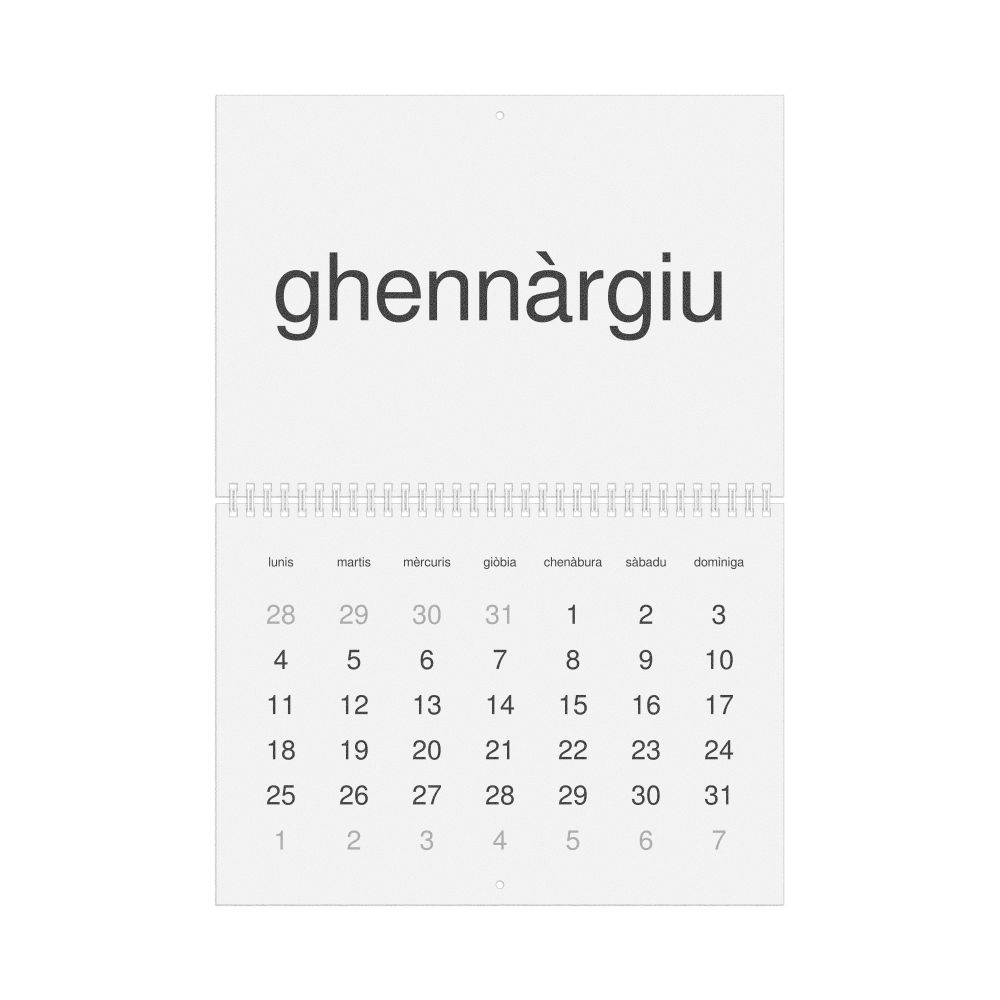 - Sardinian heritage speakers and cultural connectors - For individuals seeking to maintain a connection to their history, ancestral roots, or the culture associated with the Sardinian language, the calendar serves as a daily cultural marker. Use it in your home, office, library, or museum as a link to linguistic and cultural identity that integrates Sardinian into your everyday life. Familiar language script and naming conventions may also provide a sense of home in a foreign environment.