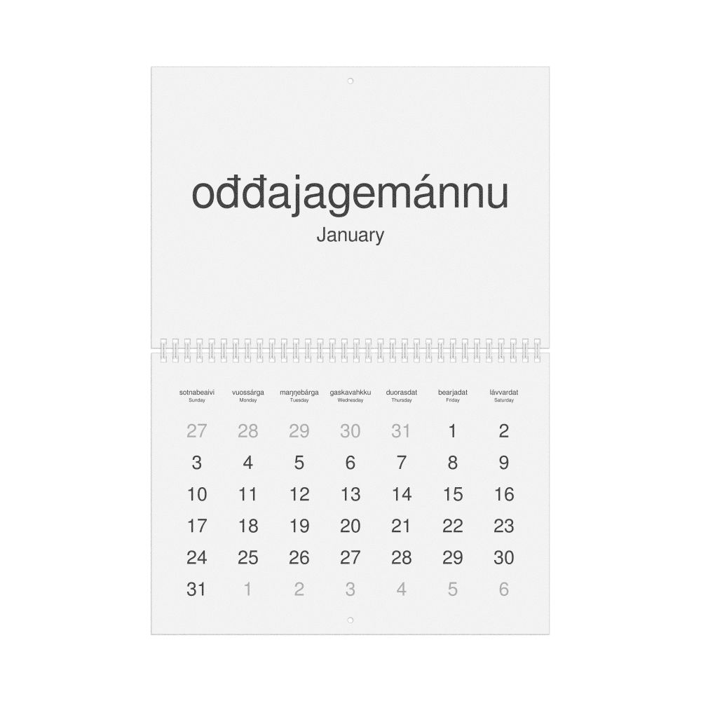 2026 Wall Calendar, Northern Sámi-Labeled, Monday-Start Layout, Wire-Bound, 11.7 x 8.3 in (29.7 x 21.0 cm)